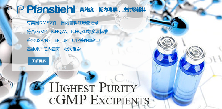 “熱烈祝賀Pfanstiehl的注射級甘氨酸Glycine(G-140)喜獲CDE登記號F20250000403, 這是Pfanstiehl產品獲得的第18個CDE登記號!”甘氨酸在醫藥輔料制劑中應用廣泛,, 可作為緩沖劑,增溶劑,穩定劑等,具有諸多優勢。Pfanstiehl秉承一貫高品質理念,為滿足全球生物制藥行業對于高品質甘氨酸的需求,隆重推出的注射級甘氨酸Glycine (G-140), 具有超高純度,超低內毒素,超低金屬殘留的特點,單獨檢測29種金屬離子,并且新增DNA,RNA,DNA酶,RNA酶和脂肪酶,亞硝酸鹽等多項質量指標的檢測,符合多國藥典規定(USP, EP, BP, JPE, ChP),可用于生物治療性藥物和疫苗的生產。產品信息:· 產品名稱:Glycine, High Purity, Low Endotoxin, Low Metals, USP, EP, BP, JPE, ChP (G-140)· 中文名稱:甘氨酸· 分子式:C2H5NO2· 分子量:75.07 g / mol· CAS號:56-40-6· 產品貨號:G-140產品特點: · 超高純度,超低內毒素,超低微生物含量,超低金屬雜質殘留· 質量指標新增DNA,RNA,DNA酶,RNA酶,脂肪酶和亞硝酸鹽檢測· 符合多國藥典:USP, EP, BP, JPE, ChP· 符合ICH Q3D標準· 符合GMP標準· 已獲DMF和CDE登記號 產品應用:· 緩沖劑· 穩定劑· 增溶劑如果您對Pfanstiehl注射級別Glycine G-140感興趣,歡迎聯系Pfanstiehl 中國區代理商北京西美杰科技有限公司獲得如下詳細的產品概況說明文件和測試樣品。Pfanstiehl Inc.最新產品系列如下,歡迎聯系北京西美杰科技有限公司獲取100g裝免費樣品。北京西美杰科技有限公司為Pfanstiehl中國代理,為客戶提供完善的技術支持與售后服務。歡迎撥打西美杰客服電話400-050-4006或者登陸網站www_xmjsci_com.vip281.com了解更多信息。 更多>